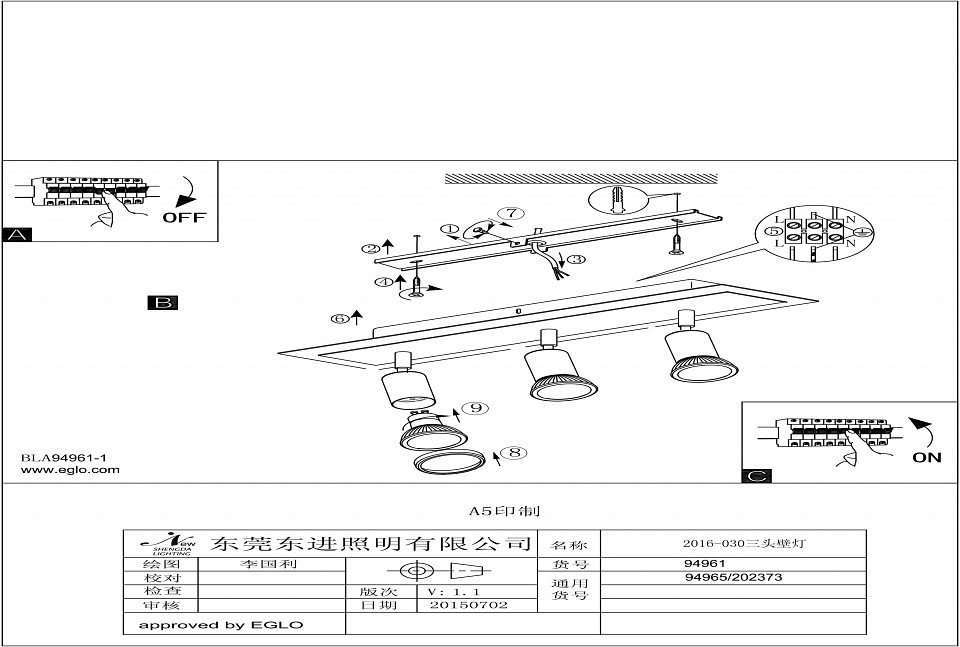 Количество ламп: 3
