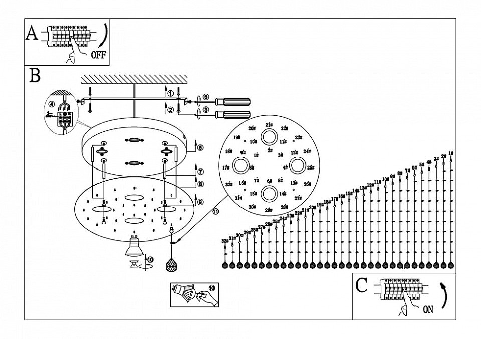 Направление плафонов: вниз
