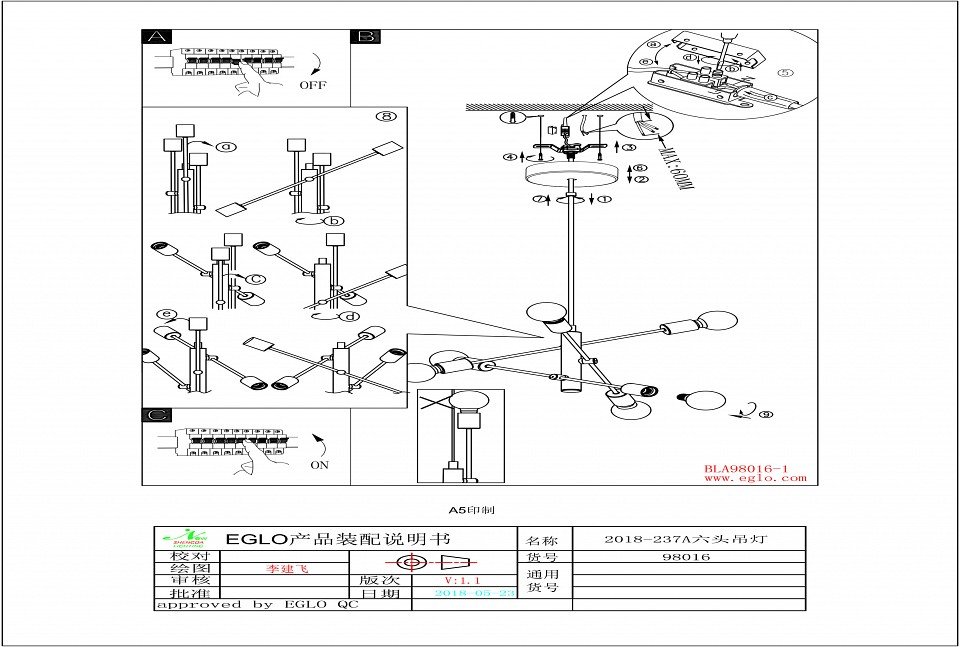 Станьте первым, кто оставит отзыв о товаре Подвесная люстра Eglo Gradoli 98016.