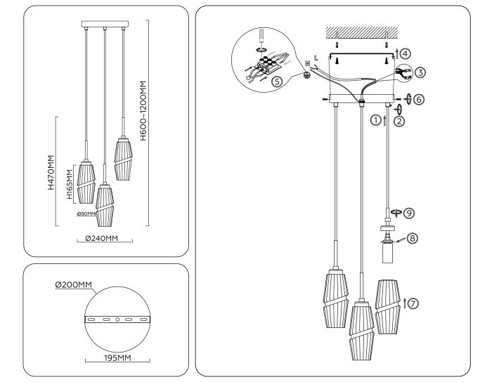 Точная форма - Несколько плафонов (Для подвесных люстр, потолочных люстр и подвесных светильников): Каскад в одну комнату