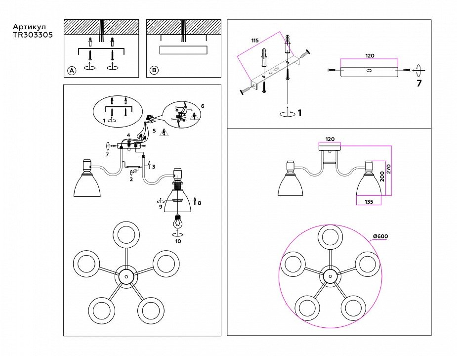 Основная форма светильника (Для подвесных люстр, потолочных люстр и подвесных светильников): Несколько плафонов