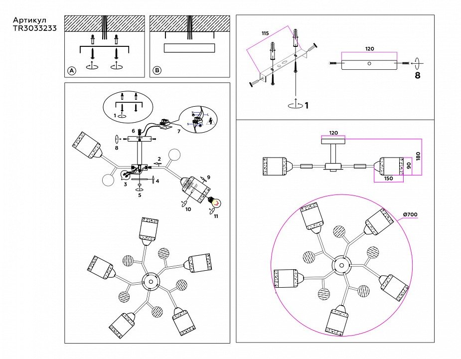 Основная форма светильника (Для подвесных люстр, потолочных люстр и подвесных светильников): Несколько плафонов