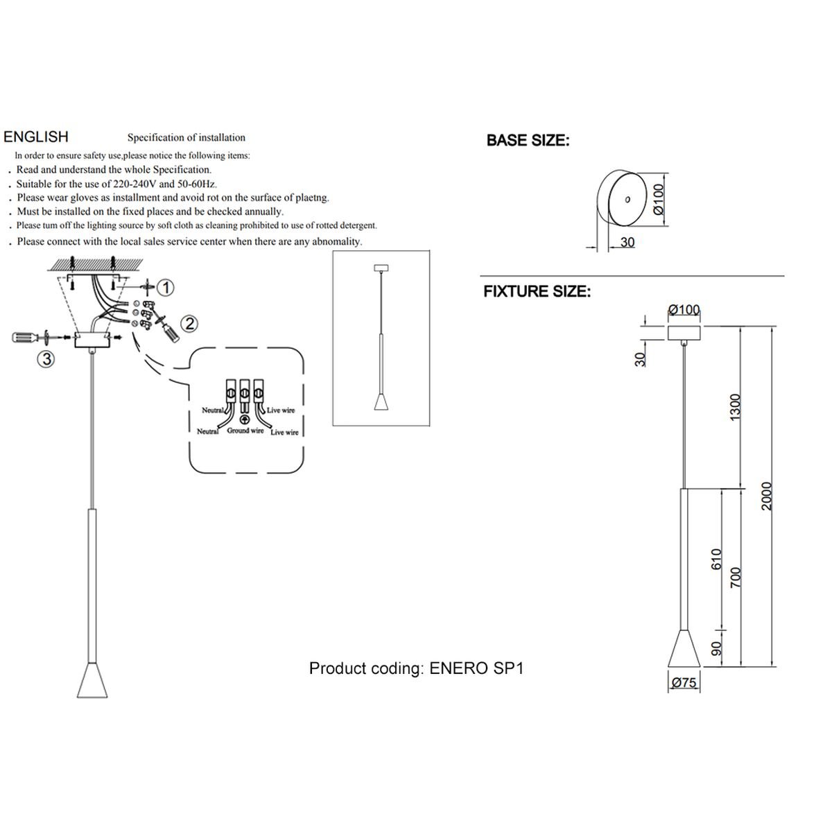 Длина подвеса, мм: 1300