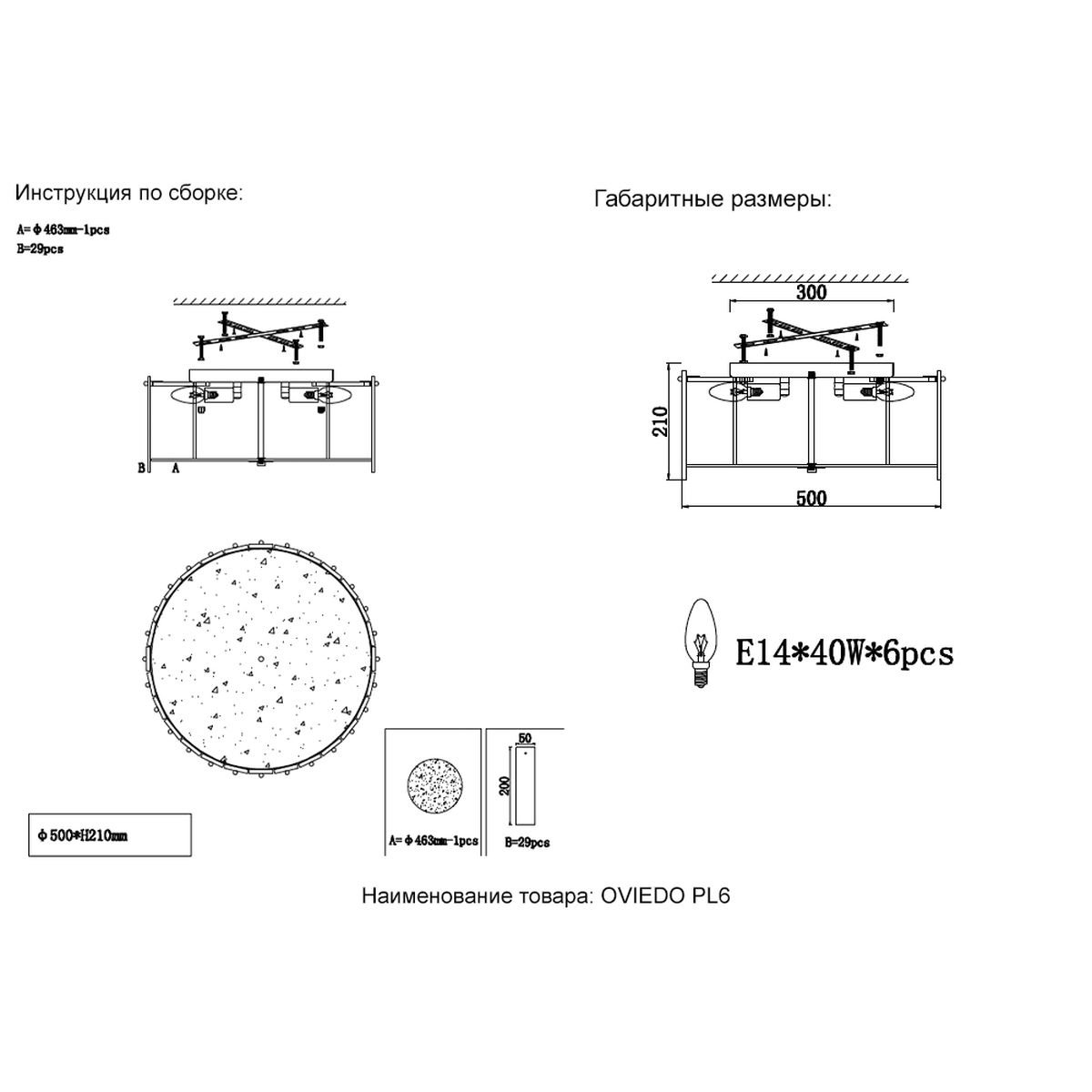 Главная Люстры и потолочные светильники Потолочный светильник Crystal Lux Oviedo PL6