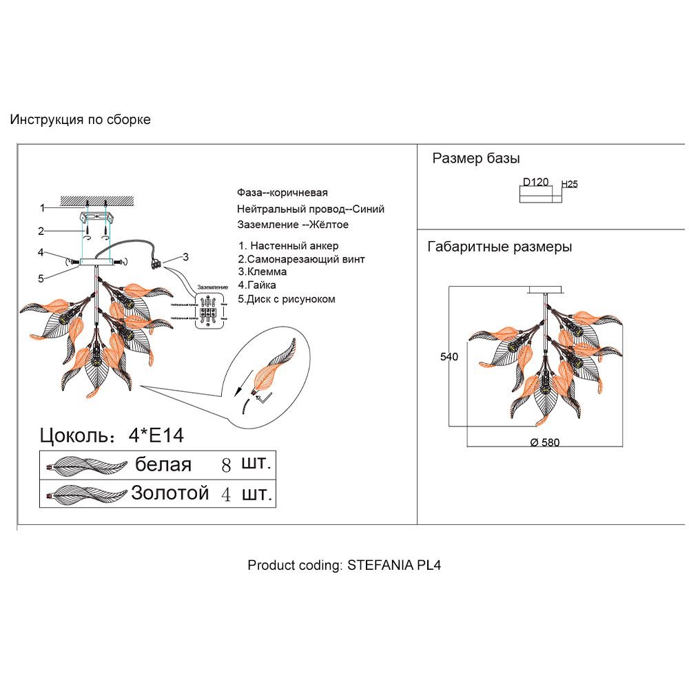 Цвет плафона: Белый, Золото