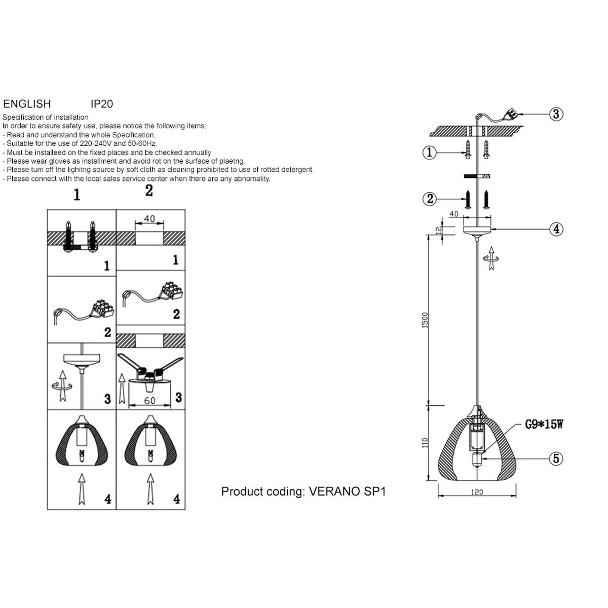 Длина подвеса, мм: 1500