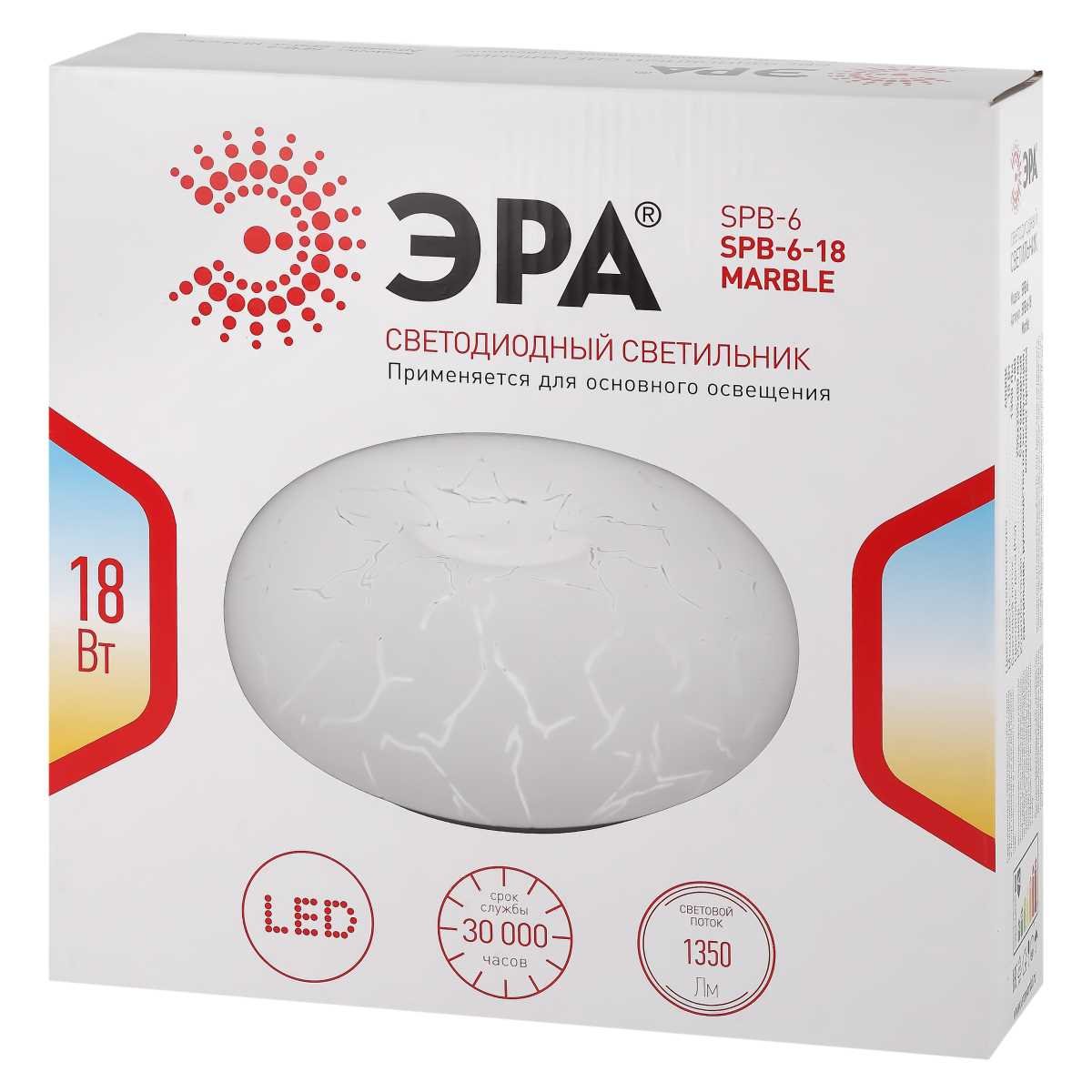 Главная Люстры и потолочные светильники Светильник потолочный светодиодный ЭРА Классик без ДУ SPB-6 - 18 Marble светодиодный 18Вт Б0051075