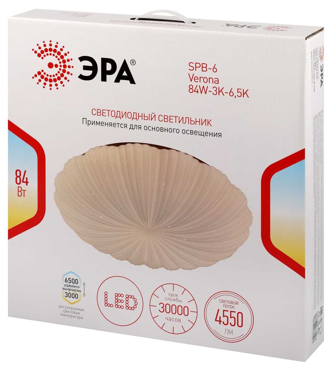 Главная Люстры и потолочные светильники Светильник потолочный светодиодный ЭРА SPB-6 Verona 84W-3K-6,5K без ДУ Б0070189