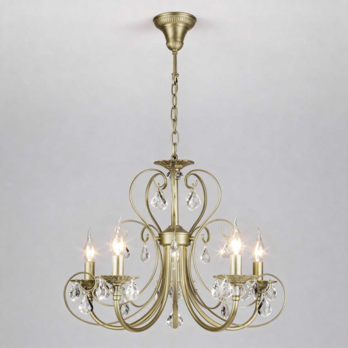 Главная Люстры и потолочные светильники Подвесная люстра Eurosvet Alda 3305/5 латунь/прозрачный хрусталь Strotskis a072114