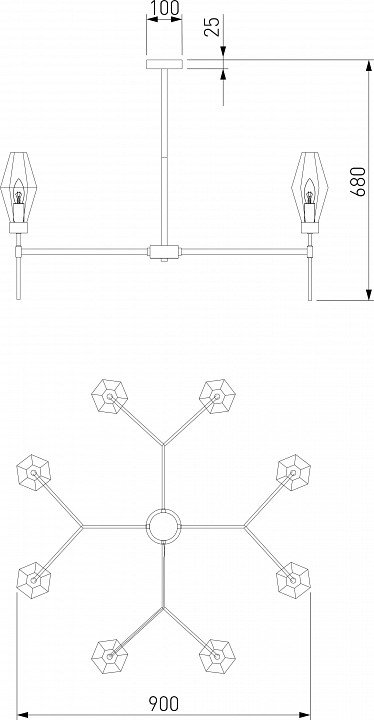Точная форма - Несколько плафонов (Для подвесных люстр, потолочных люстр и подвесных светильников): Плафоны из центра вверх