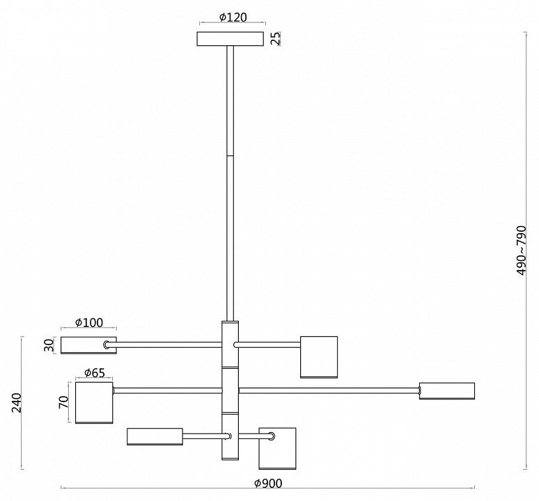 Основная форма светильника (Для подвесных люстр, потолочных люстр и подвесных светильников): Несколько плафонов