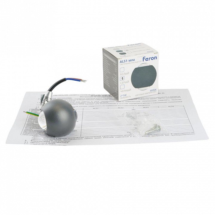 Станьте первым, кто оставит отзыв о товаре Светодиодный светильник стационарный Feron AL51 2*1W 4000K серый 51132.