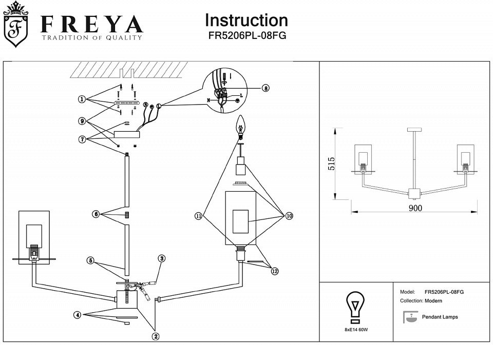 Станьте первым, кто оставит отзыв о товаре Потолочная люстра Freya Felicity FR5206PL-08FG.