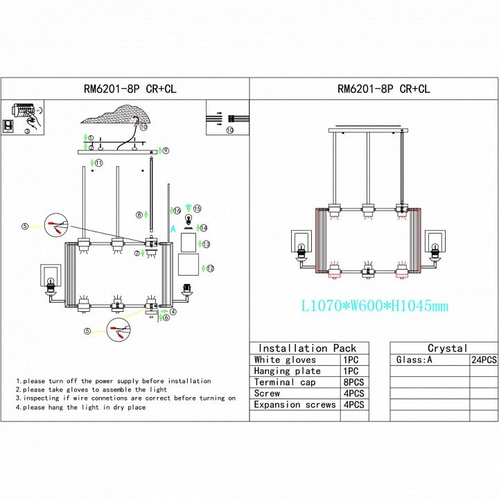 Станьте первым, кто оставит отзыв о товаре Потолочная люстра iLamp King RM6201-8P CR+CL.