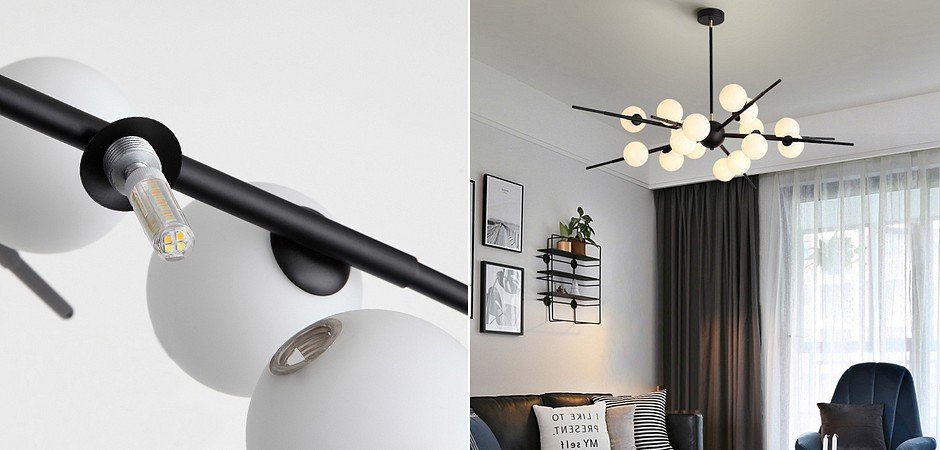 Точная форма - Несколько плафонов (Для подвесных люстр, потолочных люстр и подвесных светильников): Плафоны в разные стороны