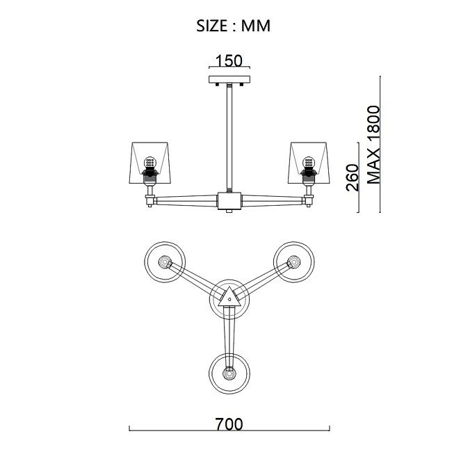 Тип крепления люстры: на штанге
