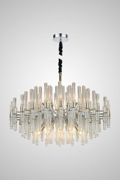 Люстра впечатляет своим строгим современным дизайном и яркостью - отлично освещает просторную гостиную.