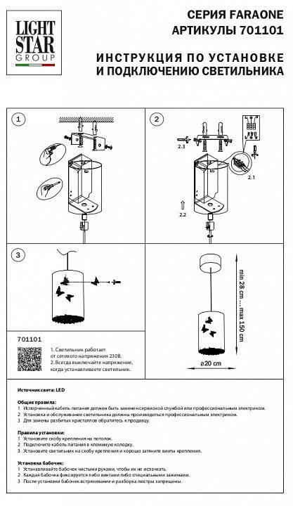 Станьте первым, кто оставит отзыв о товаре Подвесной светильник Lightstar Faraone 701101.