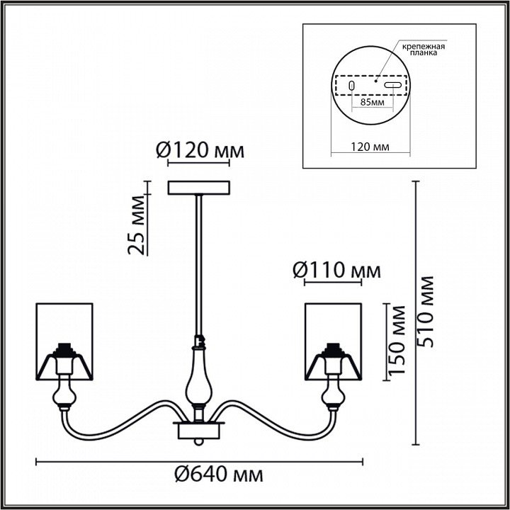 Тип крепления люстры: на штанге