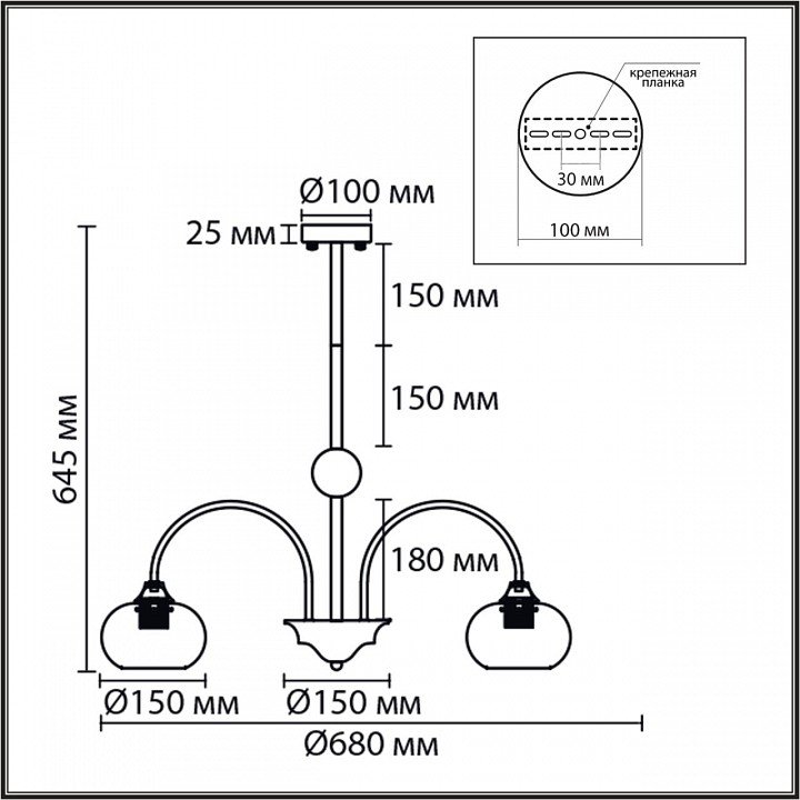 Тип крепления люстры: на штанге