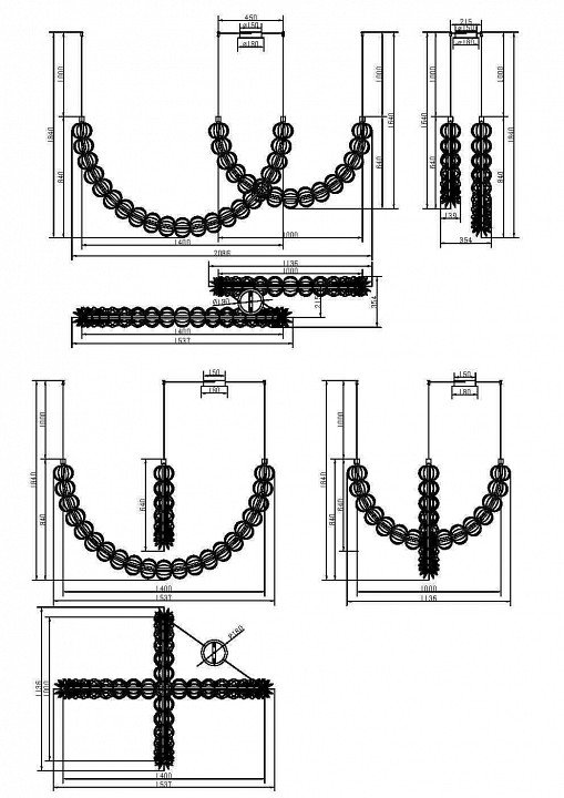 Основная форма светильника (Для подвесных люстр, потолочных люстр и подвесных светильников): Несколько плафонов