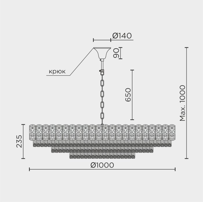 Длина подвеса, мм: 650