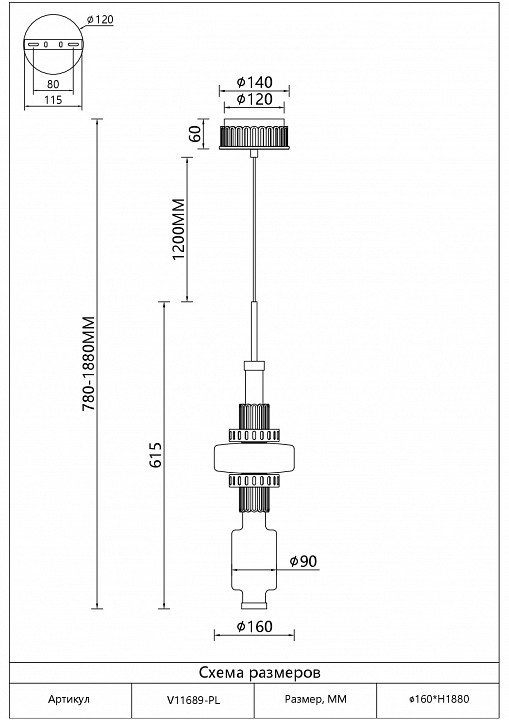 Длина подвеса, мм: 1200