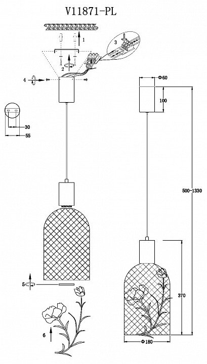 Длина подвеса, мм: 1330