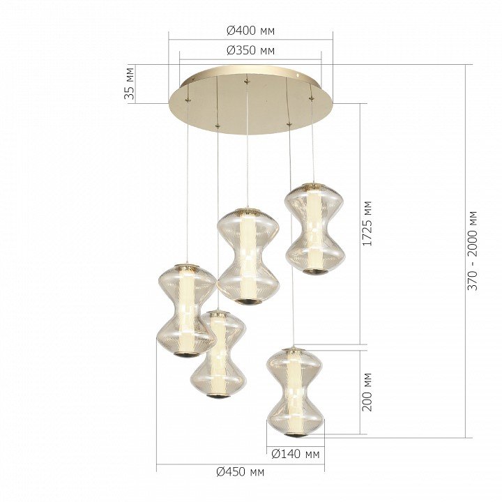 Точная форма - Несколько плафонов (Для подвесных люстр, потолочных люстр и подвесных светильников): Каскад в одну комнату