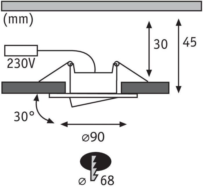 Диаметр врезного отверстия, мм: 68