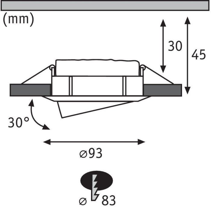 Диаметр врезного отверстия, мм: 83
