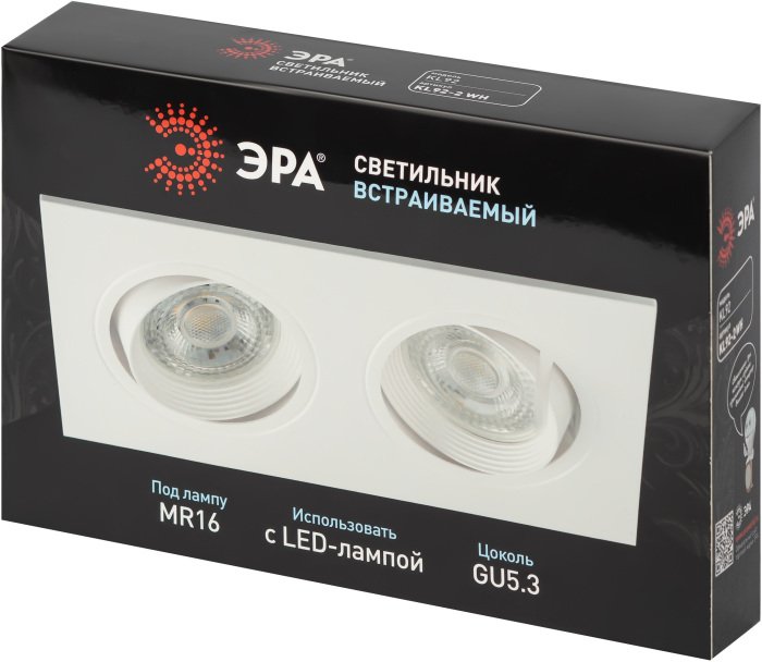 Станьте первым, кто оставит отзыв о товаре Встраиваемый светильник ЭРА KL92-2 WH Б0054375.