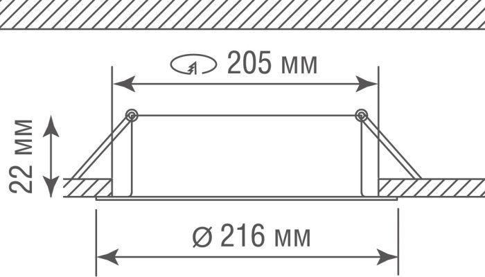 Диаметр врезного отверстия, мм: 205