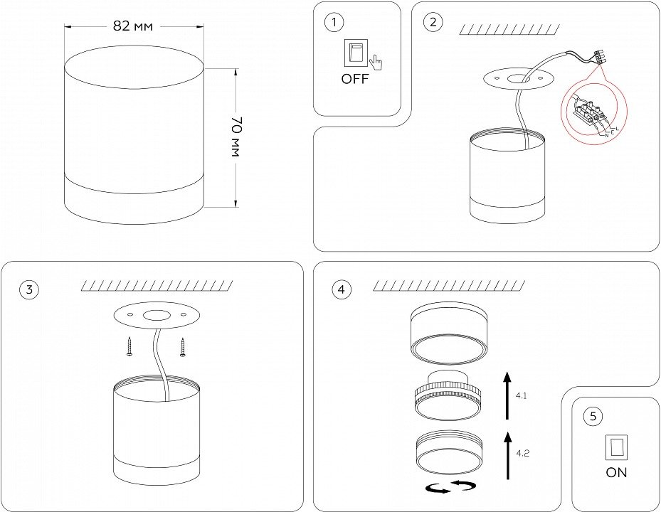 Тип установки светильника: накладной