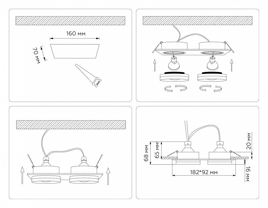 Тип установки светильника: встраиваемый