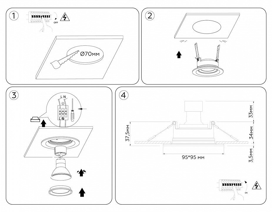 Тип установки светильника: встраиваемый