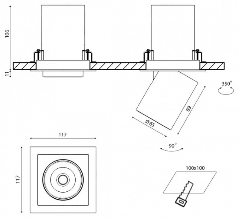 Тип установки светильника: встраиваемый