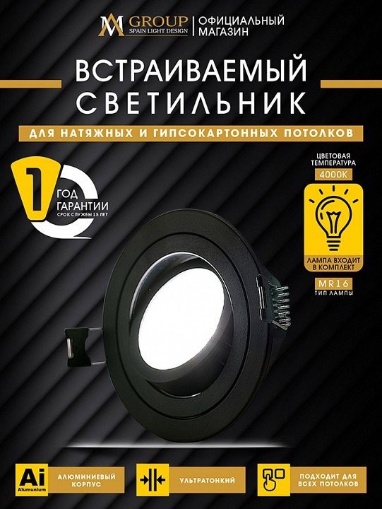 Станьте первым, кто оставит отзыв о товаре Встраиваемый светильник AM-Group AM540-5W-4000K-BK.