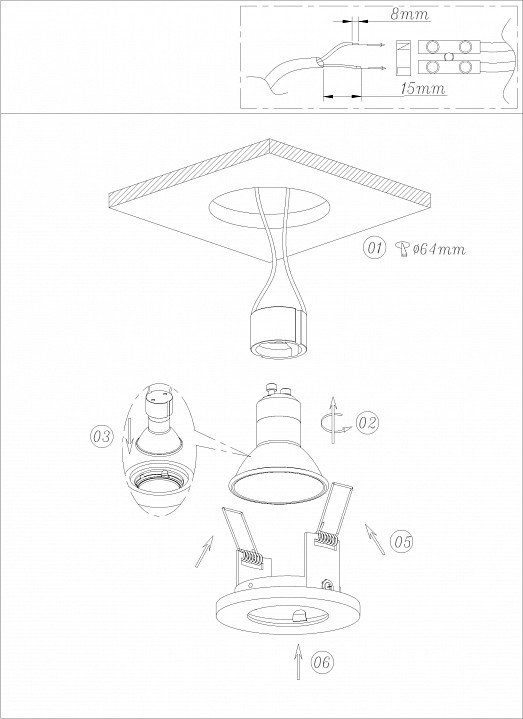 Тип установки светильника: встраиваемый