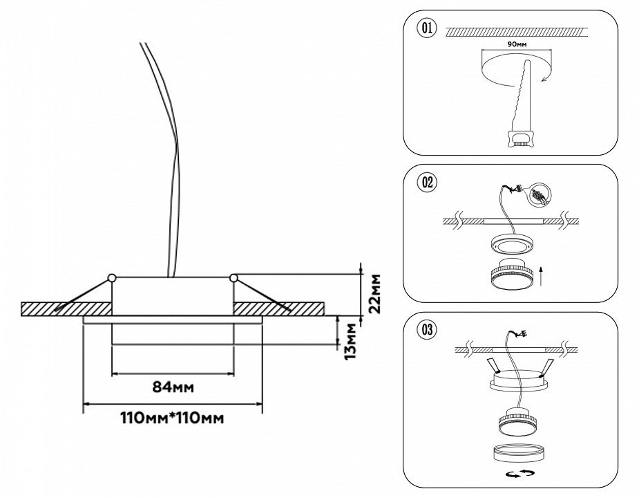 Диаметр врезного отверстия, мм: 90