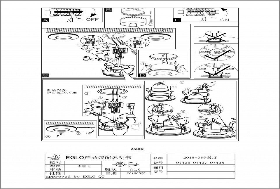 Диаметр врезного отверстия, мм: 78