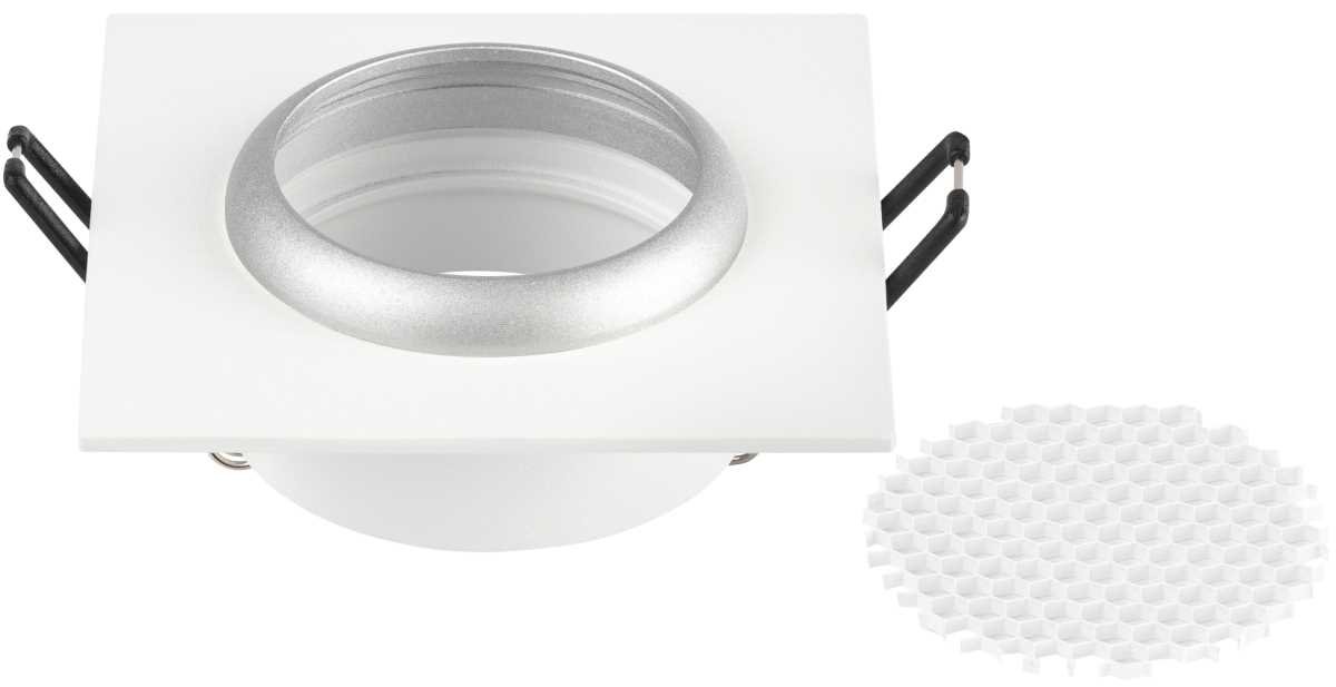 Станьте первым, кто оставит отзыв о товаре Светильник встраиваемый алюминиевый ЭРА KL110 WH/SL под лампу MR16 GU5.3 белый/серебро матовый Б0061532.