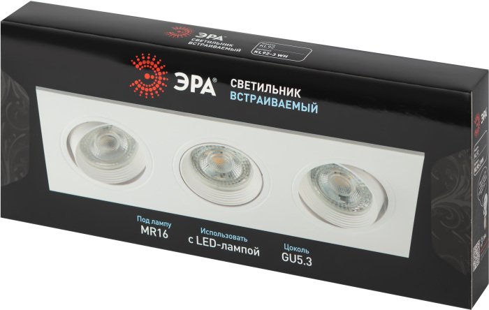 Станьте первым, кто оставит отзыв о товаре Встраиваемый светильник ЭРА KL92-3 WH Б0054376.