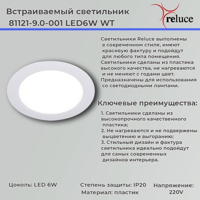 Точечный светильник Reluce 81121-9.0-001 LED6W WT