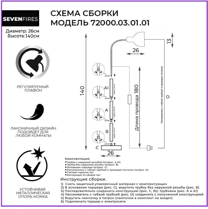 Станьте первым, кто оставит отзыв о товаре Торшер Seven Fires Eir 72000.03.01.01.