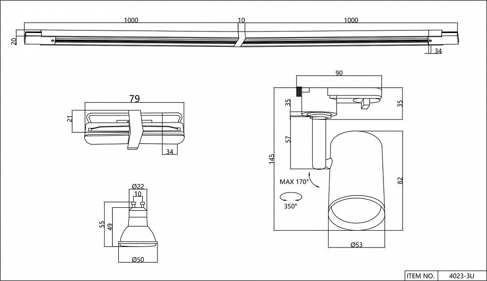 Компоненты, входящие в комплект: 3 спота. шинопровод (2х1м). коннектор