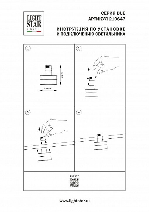 Главная Трековые светильники Накладной светильник Lightstar Due Hermes 210647