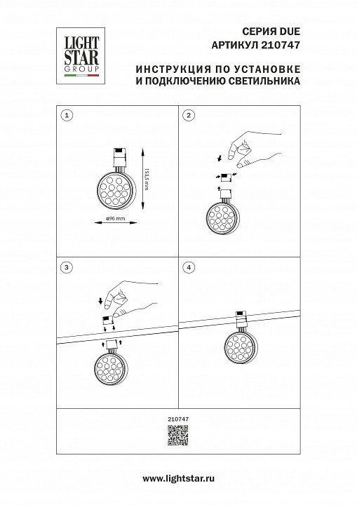 Главная Трековые светильники Светильник на штанге Lightstar Due Hermes 210747