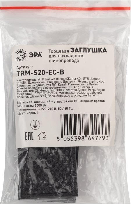 Главная Трековые светильники Заглушка Nova TRM-S20-EC BK