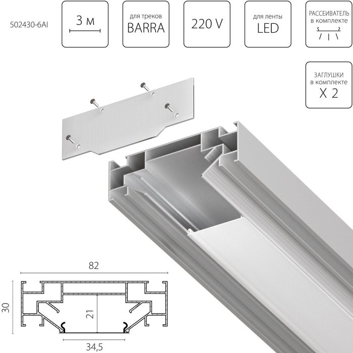 Главная Трековые светильники Профиль Barra Base 502430-6AI
